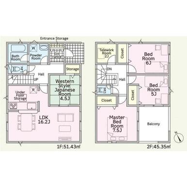 号棟番号:1号棟 面積に別途ルーフバルコニー約8.51平米有り |